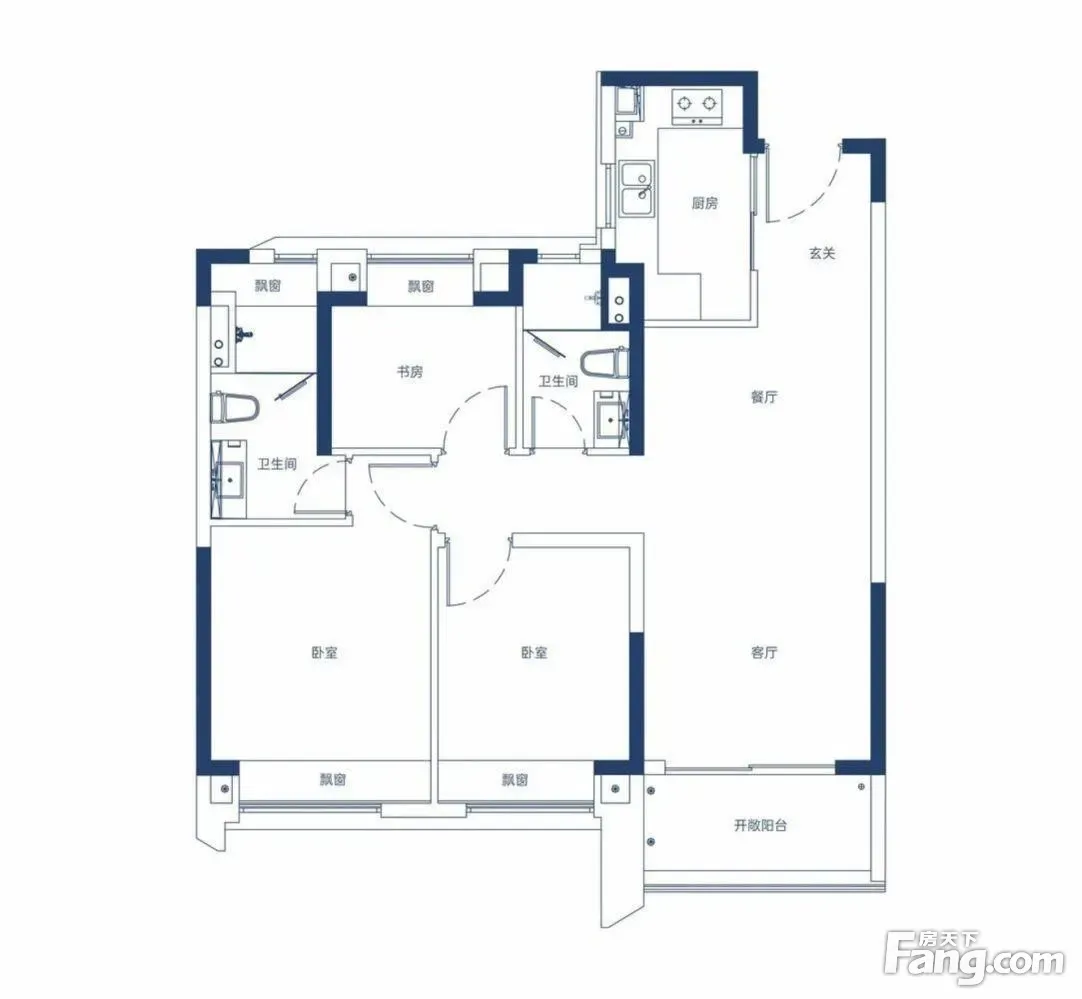 户型齐全,主打南北通透,卧室朝南三居