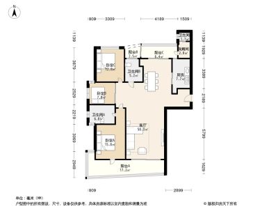百汇园二期户型方正卧室朝南带阳台户型通透客厅宽敞