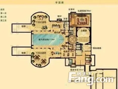 (直接对接业主) 该房子纯毛坯,仿照欧洲经典建筑打造,前院可以停6辆车 占地面积:2437.12㎡,总面积1619.03㎡,地上面积1161.03㎡;地下面积:458㎡,花园1500㎡,前后无遮挡 意大利佛罗伦萨式风格,地上三层,地下一层,房屋结构: 1、地下为电影院,游泳池,健身房,酒吧,烧烤区 2、一楼为客房套房,中西双厨房,活动室,客厅,起居室,餐厅 3、二楼为总统套房,家庭活动区 4、三楼主卧套房,主卧沙龙 更多详情请电话咨询 小区居民素质高,配套设施齐全,地理位置好,交通便利。
