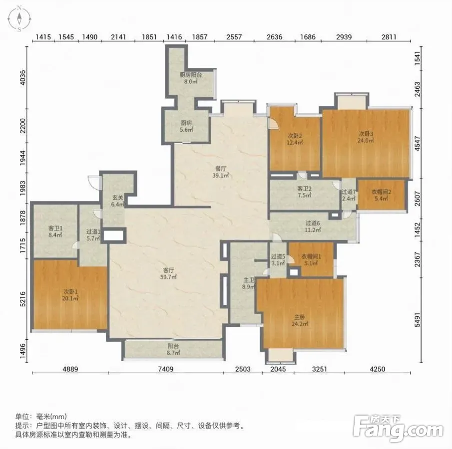 户型齐全,主打户型方正,明卫,独立衣帽间,双卧朝南,主卧朝南三居