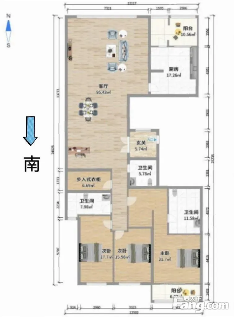 户型齐全,主打明卫,客厅朝南,双阳台三居