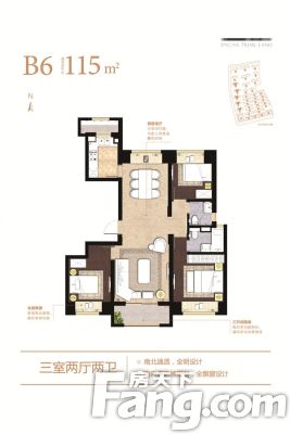 户型齐全,主打南北通透,户型方正,客厅朝南三居