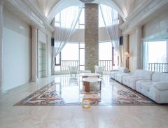 绿洲仕格维花园(2梯1户,一整层都是您家) 户型描述:客厅餐厅相连大横厅(朝南高区看江,带23平米大),客厅7.5米!安装了多根罗马柱!格局5房3厅6卫,2房朝南,3房朝北!朝南看天际线和黄浦江!朝北看小区花园和日月光购物中心! 其他亮点:小区地理位置好,楼下有地铁,有商场。 注:588平的顶楼复式!小区仅有2套!2梯1户,一整层都是您家! 业主诚意急售,感兴趣的欢迎看房品鉴!