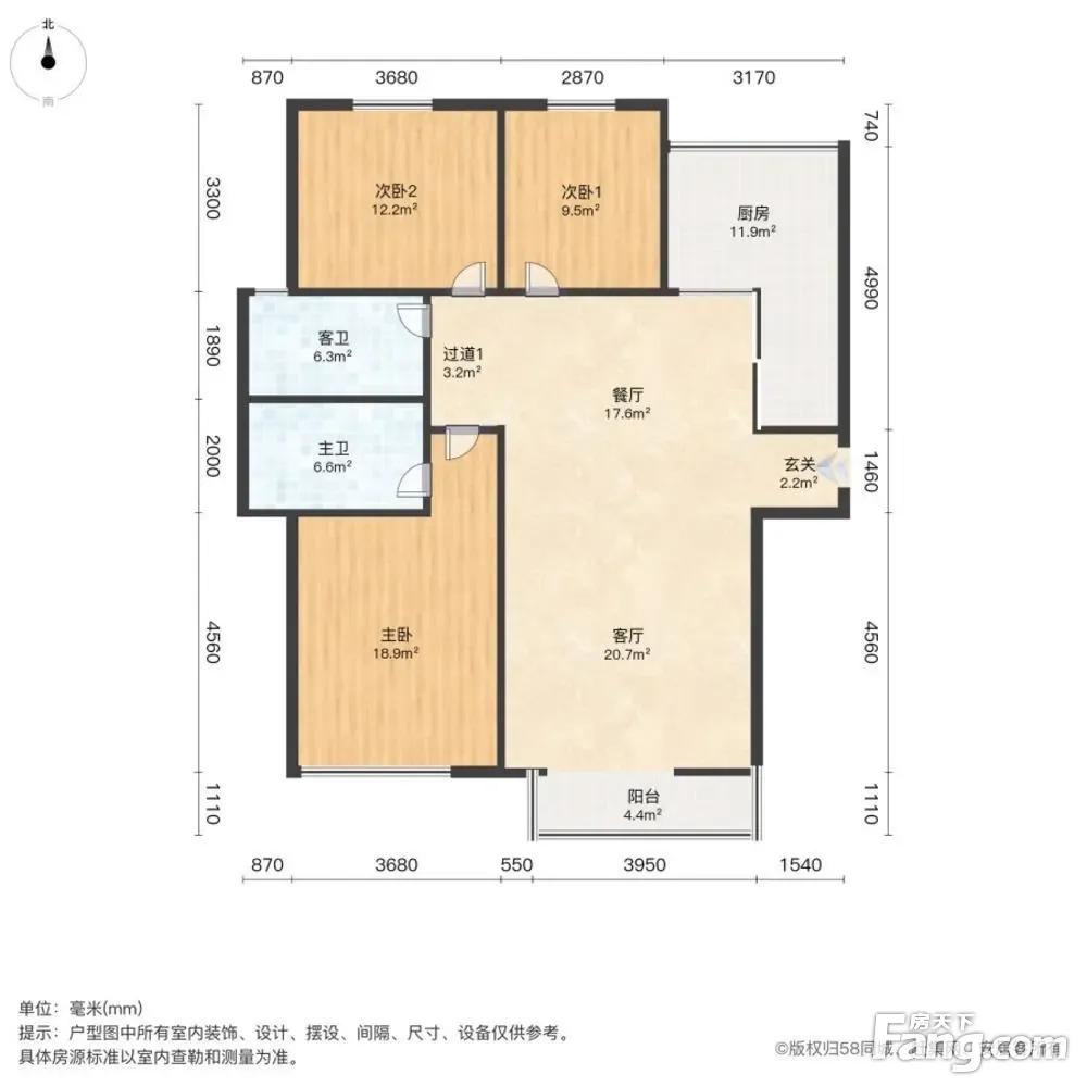 户型齐全,主打户型方正,明卫,明厨,主卧朝南三居
