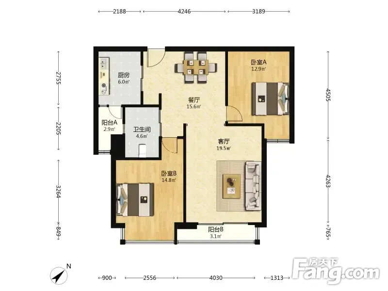户型齐全,主打明卫,明厨,客厅朝南,全明格局,主卧朝南三居