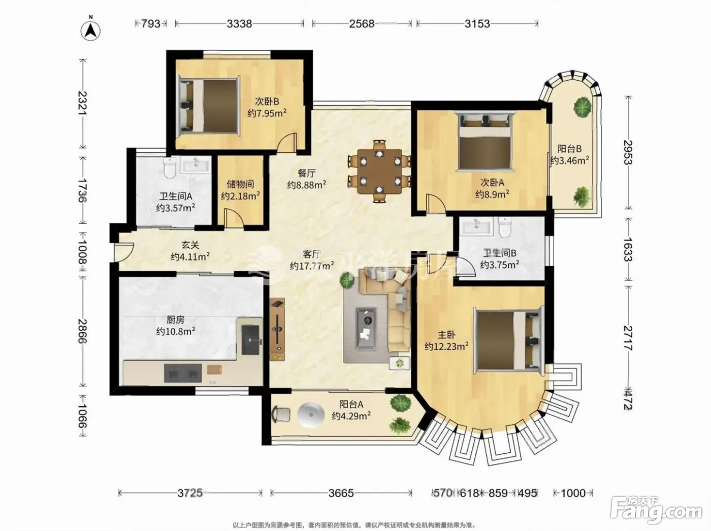户型齐全,主打户型方正,明卫,主卧朝南三居