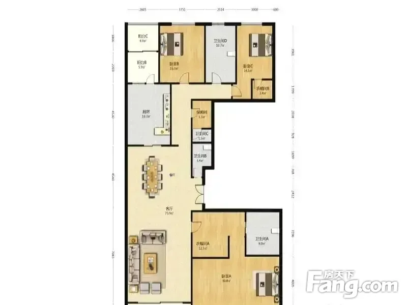 房屋拥有相对宽松的尺寸,布局通透,动静分离,设计豪华