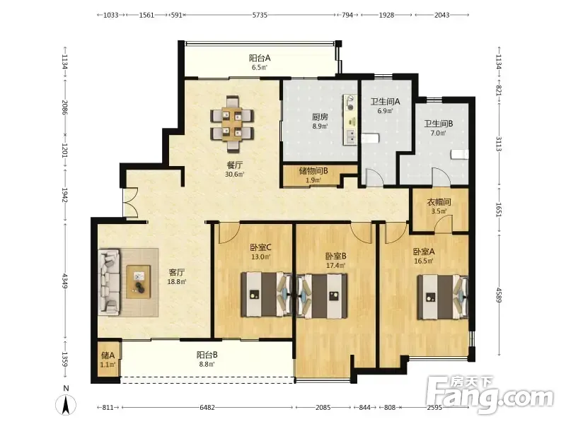 房屋拥有相对宽松的尺寸,布局通透,动静分离,设计豪华
