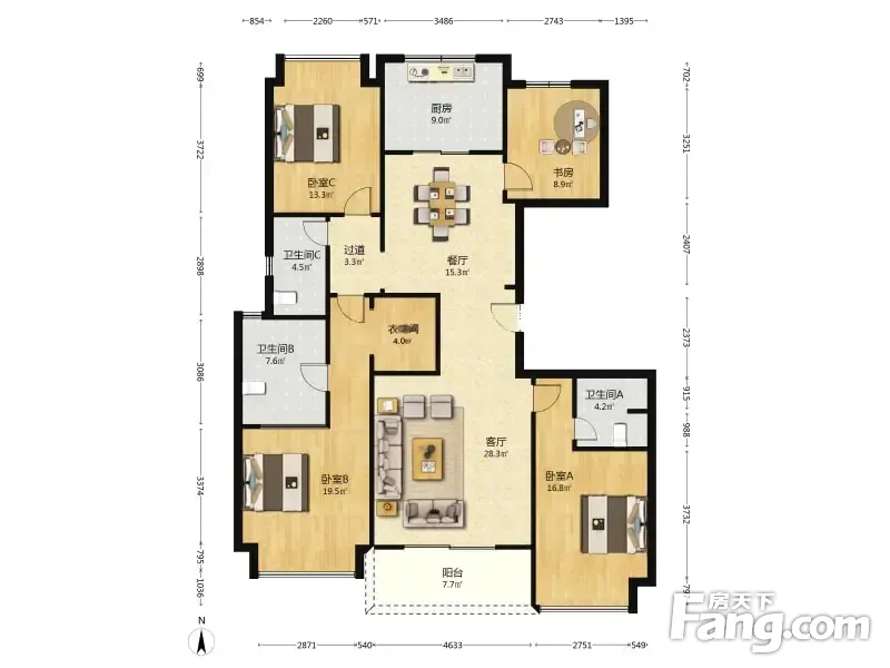 房屋拥有相对宽松的尺寸,布局通透,动静分离,设计豪华