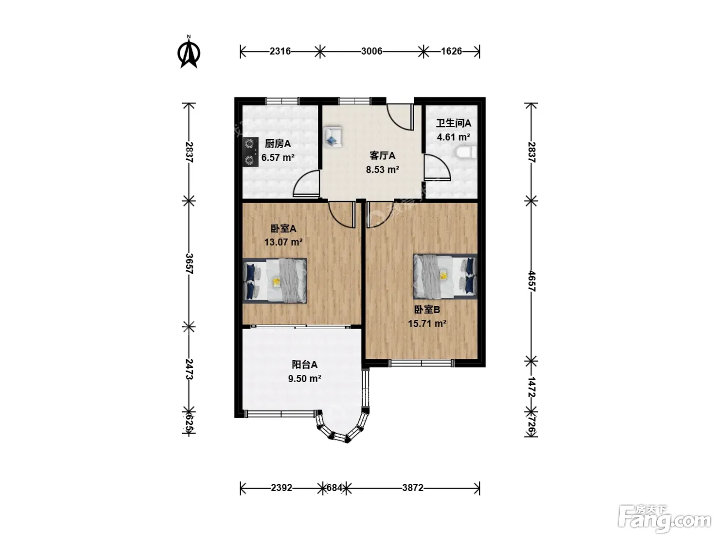 户型齐全,主打户型方正,明卫,明厨,双卧朝南,主卧朝南二居