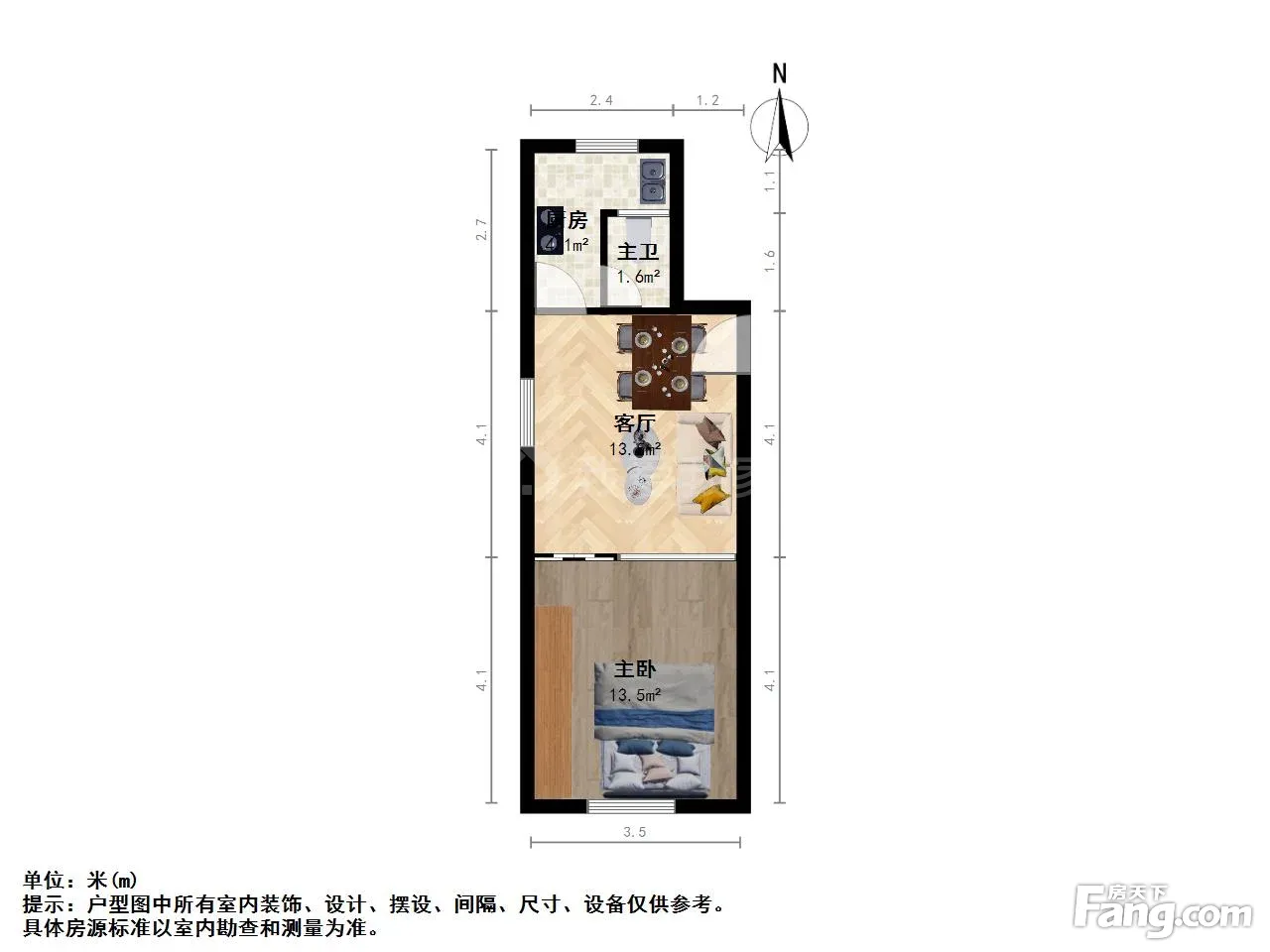 1室1厅 35.13平 南