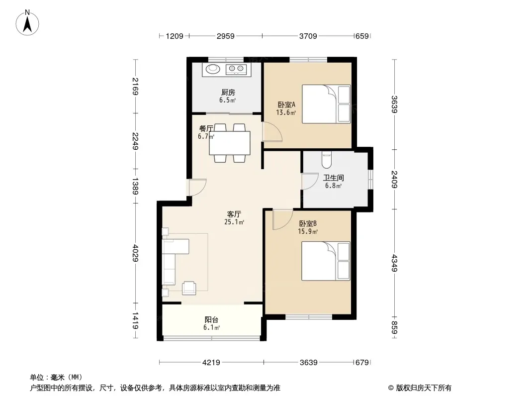户型齐全,主打户型方正,明卫,明厨,双阳台,主卧朝南二居