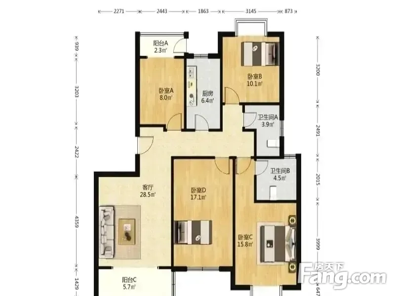 3室1厅2卫