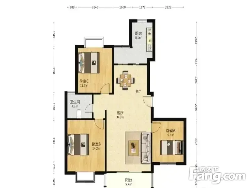 3室2厅1卫