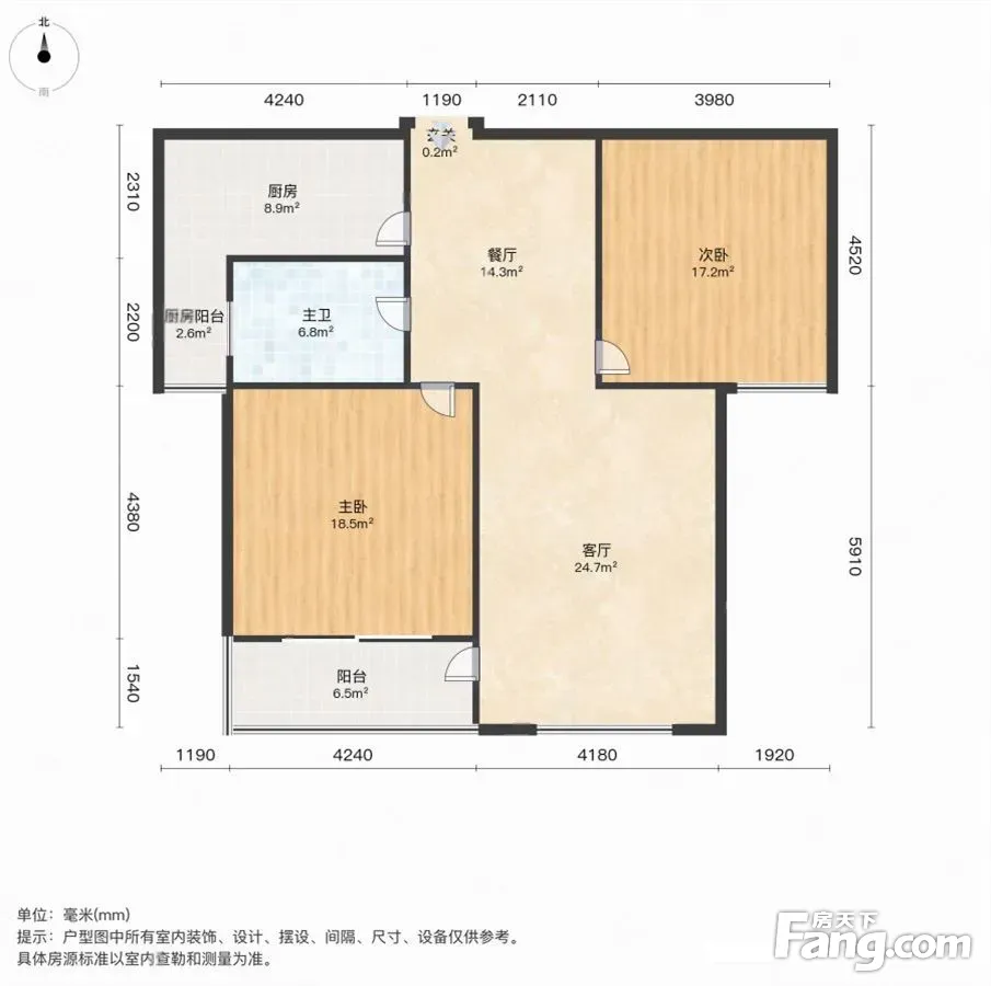 户型齐全,主打明卫,明厨,主卧朝南三居