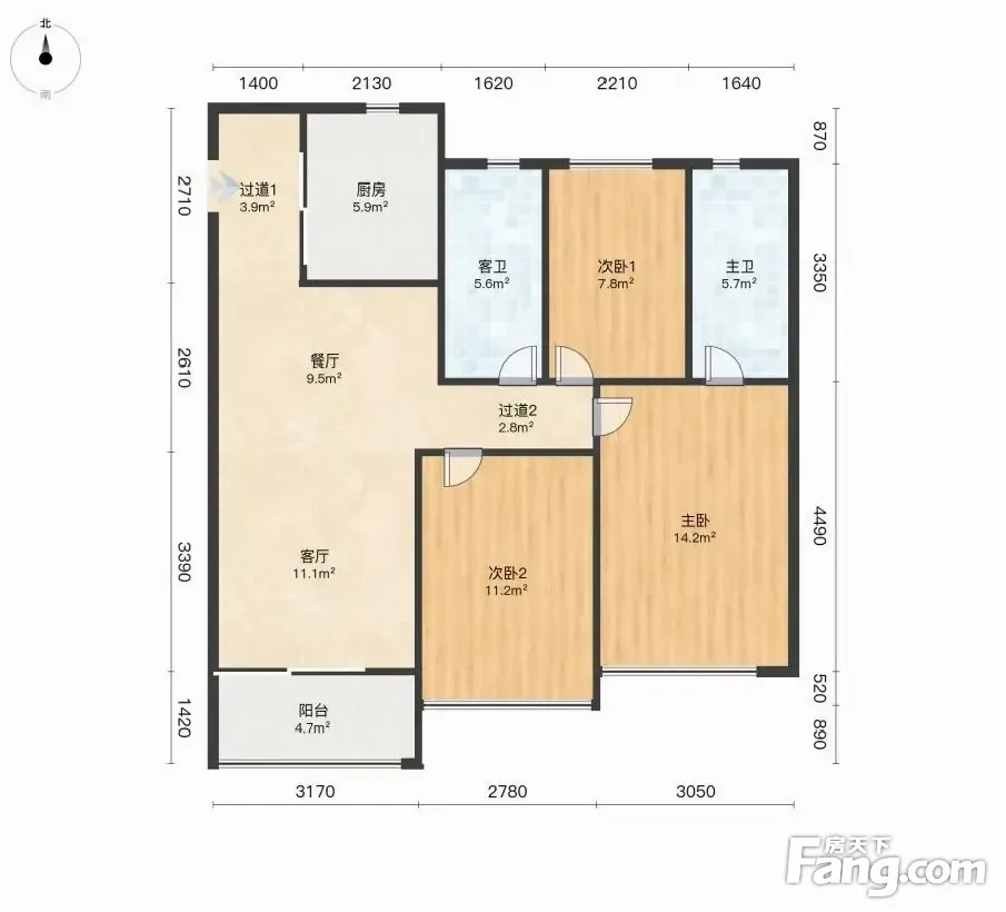 户型齐全,主打南北通透,客厅朝南三居