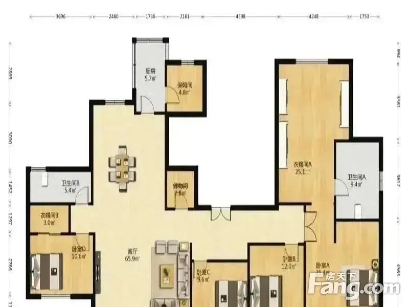 房屋拥有相对宽松的尺寸,布局通透,动静分离,设计豪华。