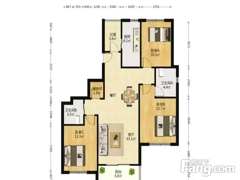 3室2厅1卫