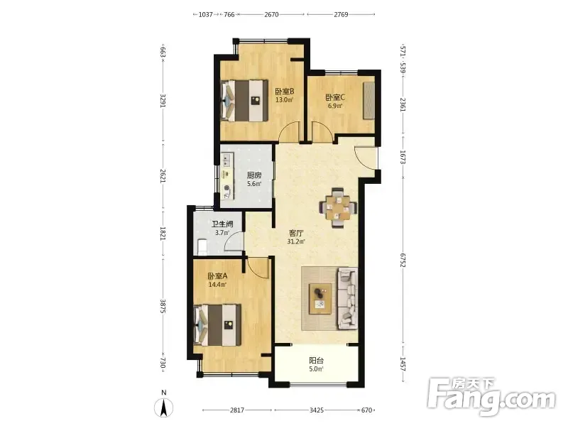 3室2厅1卫