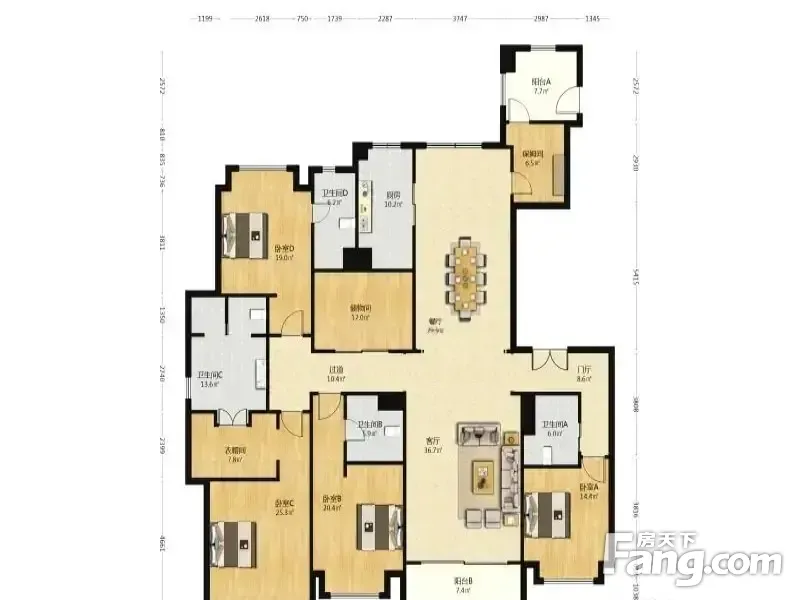 房屋拥有相对宽松的尺寸,布局通透,动静分离,设计豪华。