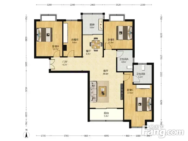 北方佳苑 3室2厅 145.06平