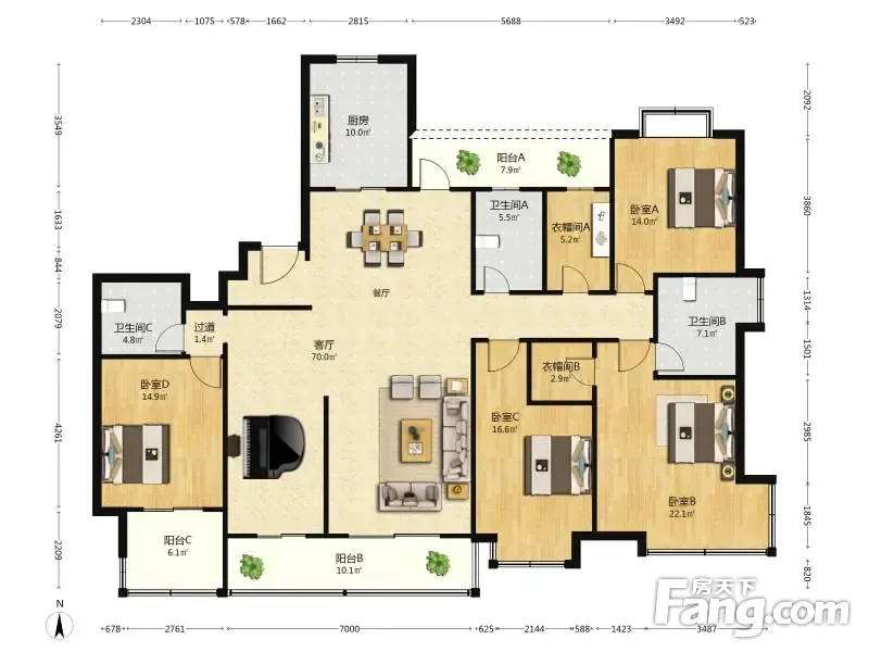 房屋拥有相对宽松的尺寸,布局通透,动静分离,设计豪华