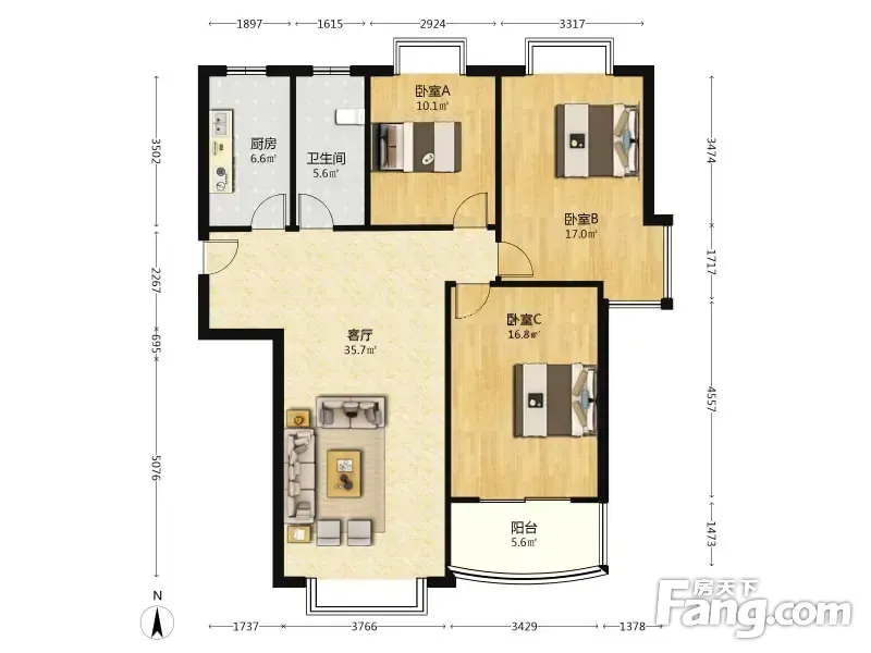 户型齐全,主打户型方正,明卫,明厨,主卧朝南三居