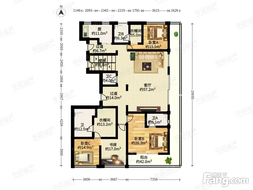 房屋拥有相对宽松的尺寸,布局通透,动静分离,设计豪华