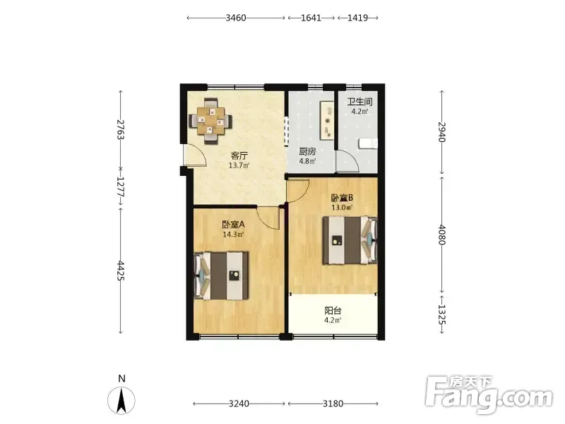 户型齐全,主打户型方正,明卫,明厨,主卧朝南二居