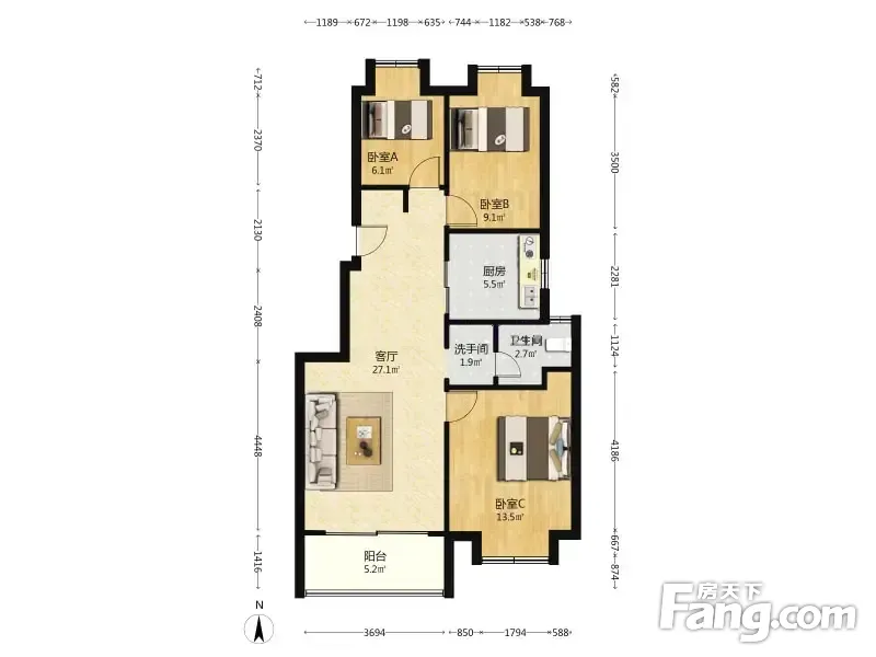 3室2厅1卫