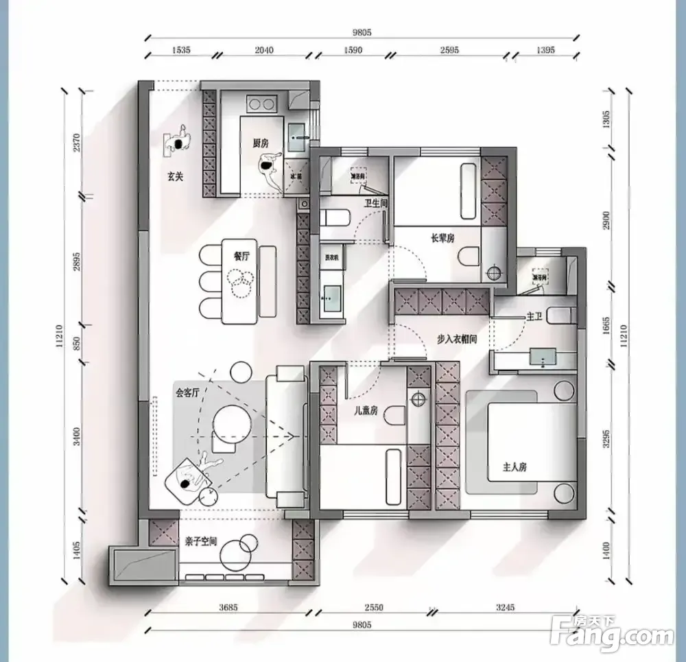 房屋拥有相对宽松的尺寸,布局通透,动静分离,设计豪华