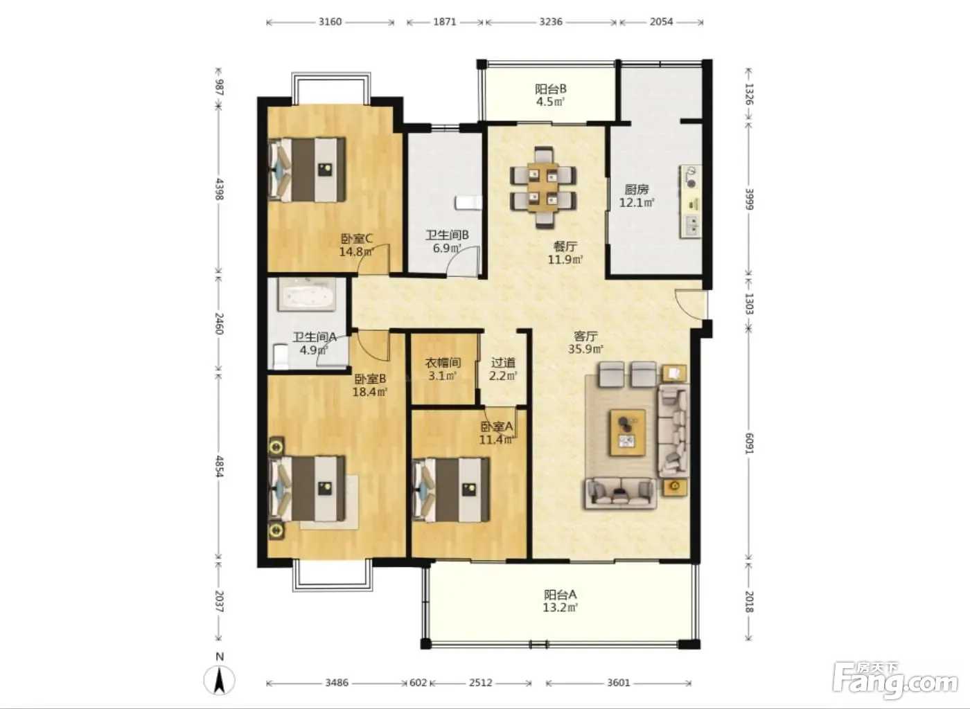 3个的卧室面积都很大,主卧18.4平,南次卧16.7平,北次卧14.8平,厅过40平,阳台15平。此广告信息均真实,没有半点虚假。 详情请致电咨询: 詹沐堂(同号)