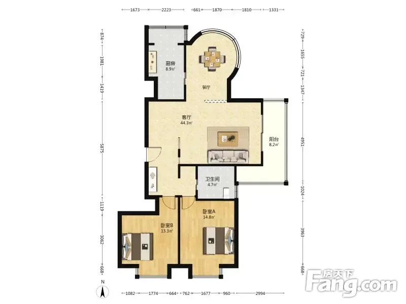 户型齐全,主打客厅朝南,户型方正,明厨,明卫,全明格局,主卧朝南二居