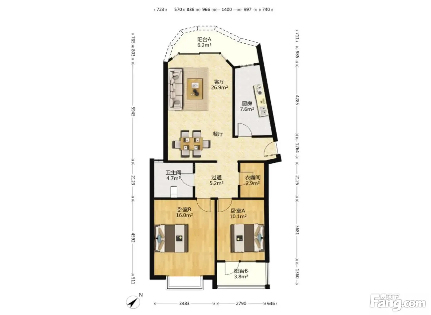 户型齐全,主打明卫,独立衣帽间,明厨,双卧朝南三居