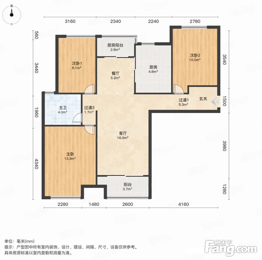 户型齐全,主打明厨,独立衣帽间,明卫,双阳台,双卧朝南三居
