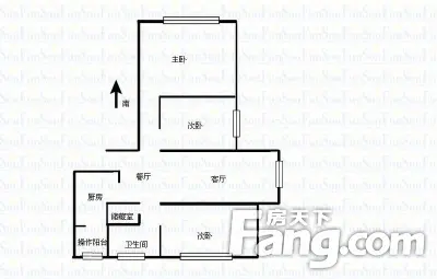 方形结构:主卧朝南带卫生间,两个次卧朝北,厅朝东带阳台,厨房和客卫朝北,全明户型,