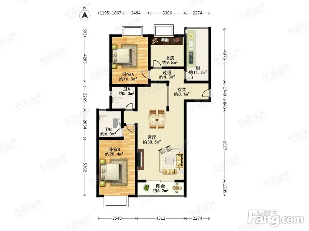 户型齐全,主打户型方正,明卫,客厅朝南二居