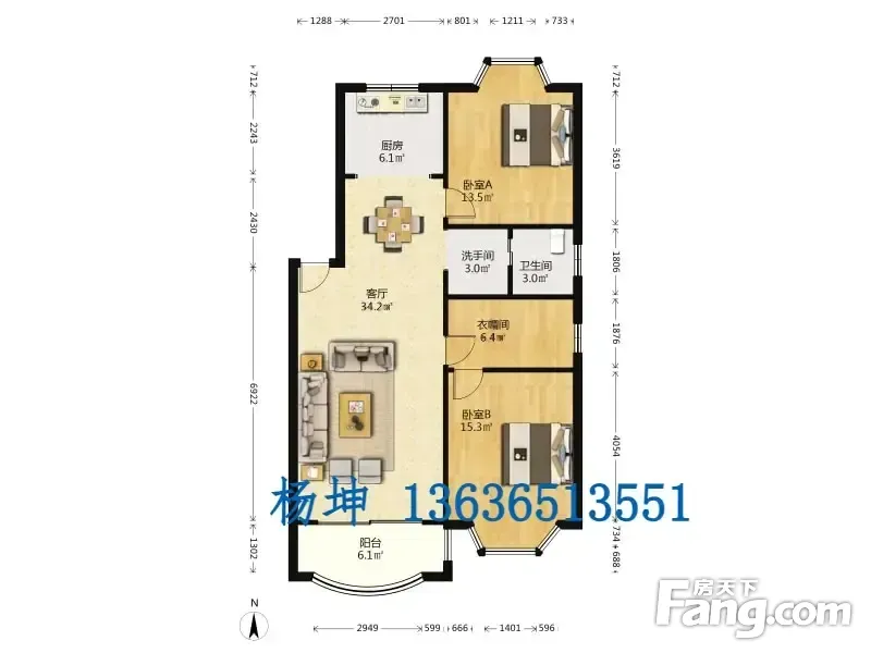 户型齐全,主打户型方正,明厨,主卧朝南三居