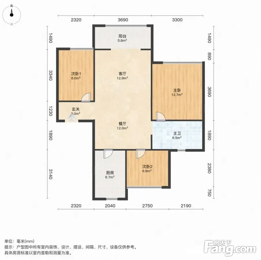 户型齐全,主打南北通透,主卧朝南二居