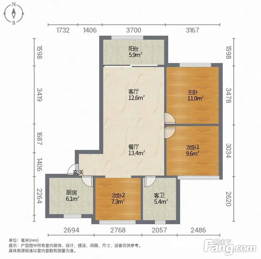 户型齐全,主打南北通透,全明格局三居