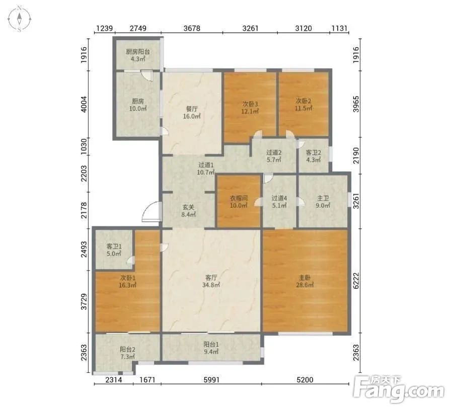 户型齐全,主打明卫,独立衣帽间,明厨,客厅朝南,全明格局,双卧朝南,主卧朝南四居