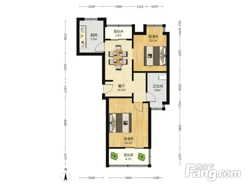 户型齐全,主打户型方正,明厨,明卫,客厅朝南二居