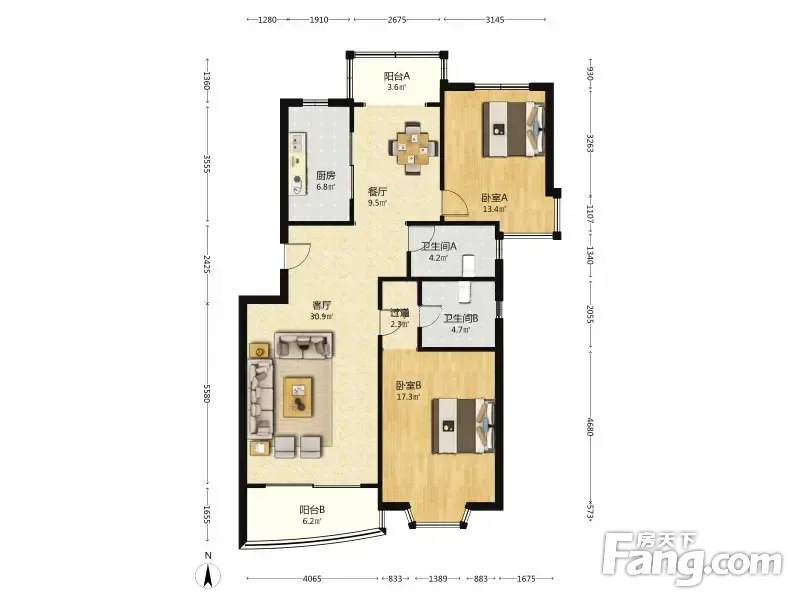 名江七星城 2室2厅 119.64平