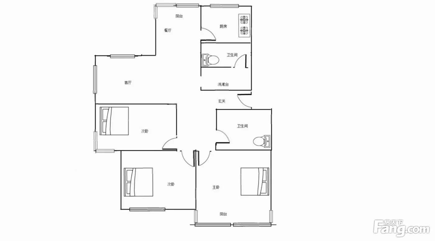 户型齐全,主打户型方正,明卫,明厨,双阳台三居