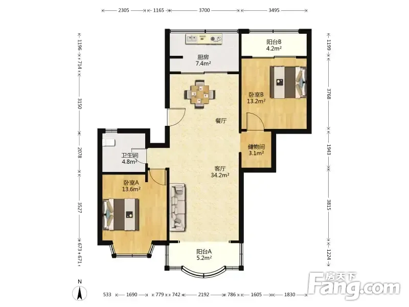 华祺苑 2室2厅 106.9平