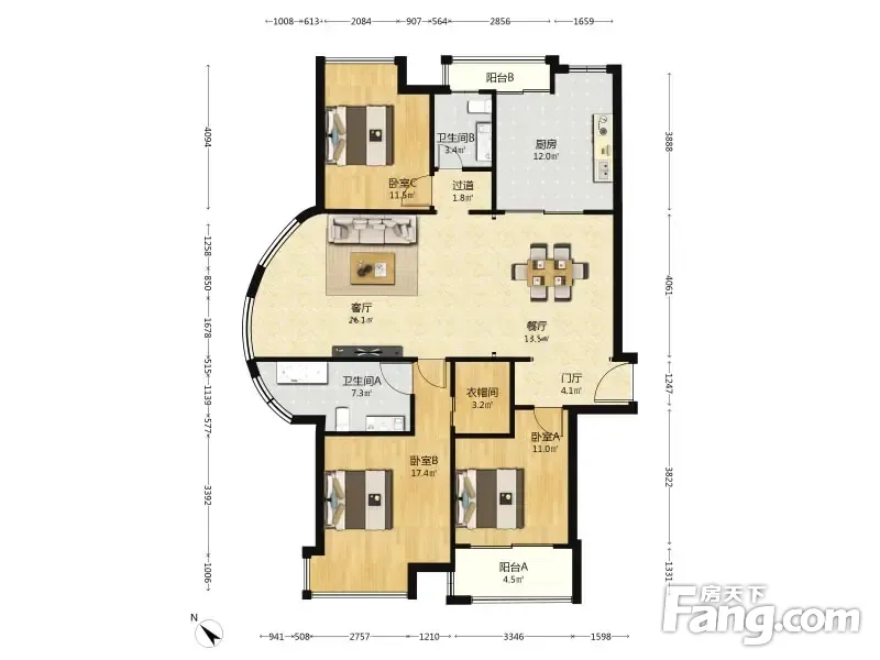 绿洲雅宾利花园(一期) 3室2厅 157.95平
