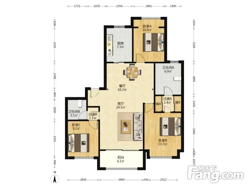 首创天阅滨江 3室2厅 126.2平
