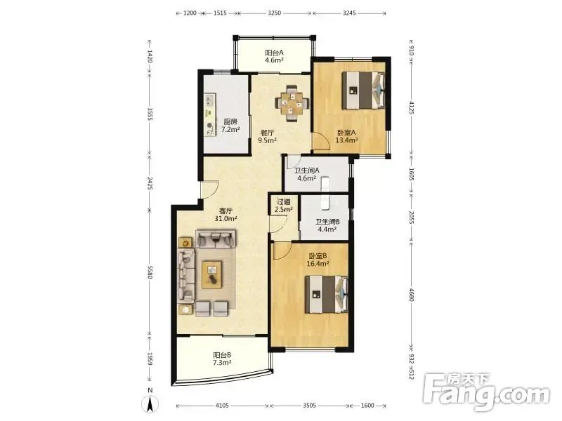 名江七星城 2室2厅 119.08平