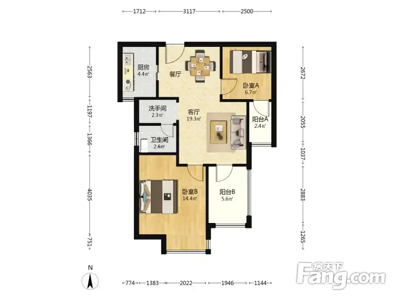 户型齐全,主打南北通透,户型方正二居