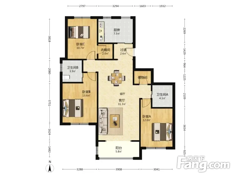 3室2厅1卫